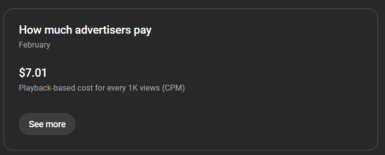 We determined this number by aggregating the data from AdSense’s public numbers; these are the averages we get for every niche and geography. They also line up almost perfectly with our real creator’s numbers! (More on this later.)