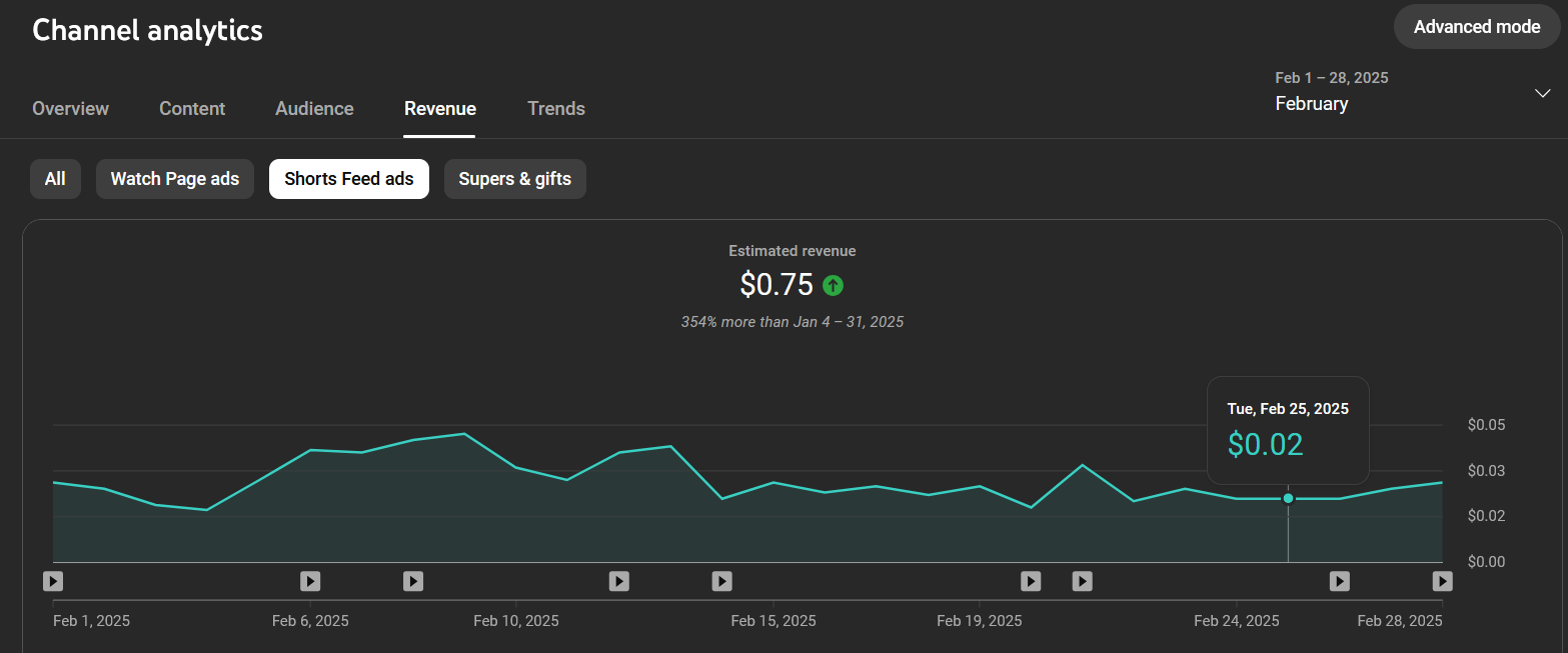 We’ve seen some numbers out there that suggest creators earn $0.01 and $0.03 per view, but our data suggests that’s a bit on the high side. Remember, not every view gets counted as an ad view. And the average rates don’t support these numbers (check out the chart below).